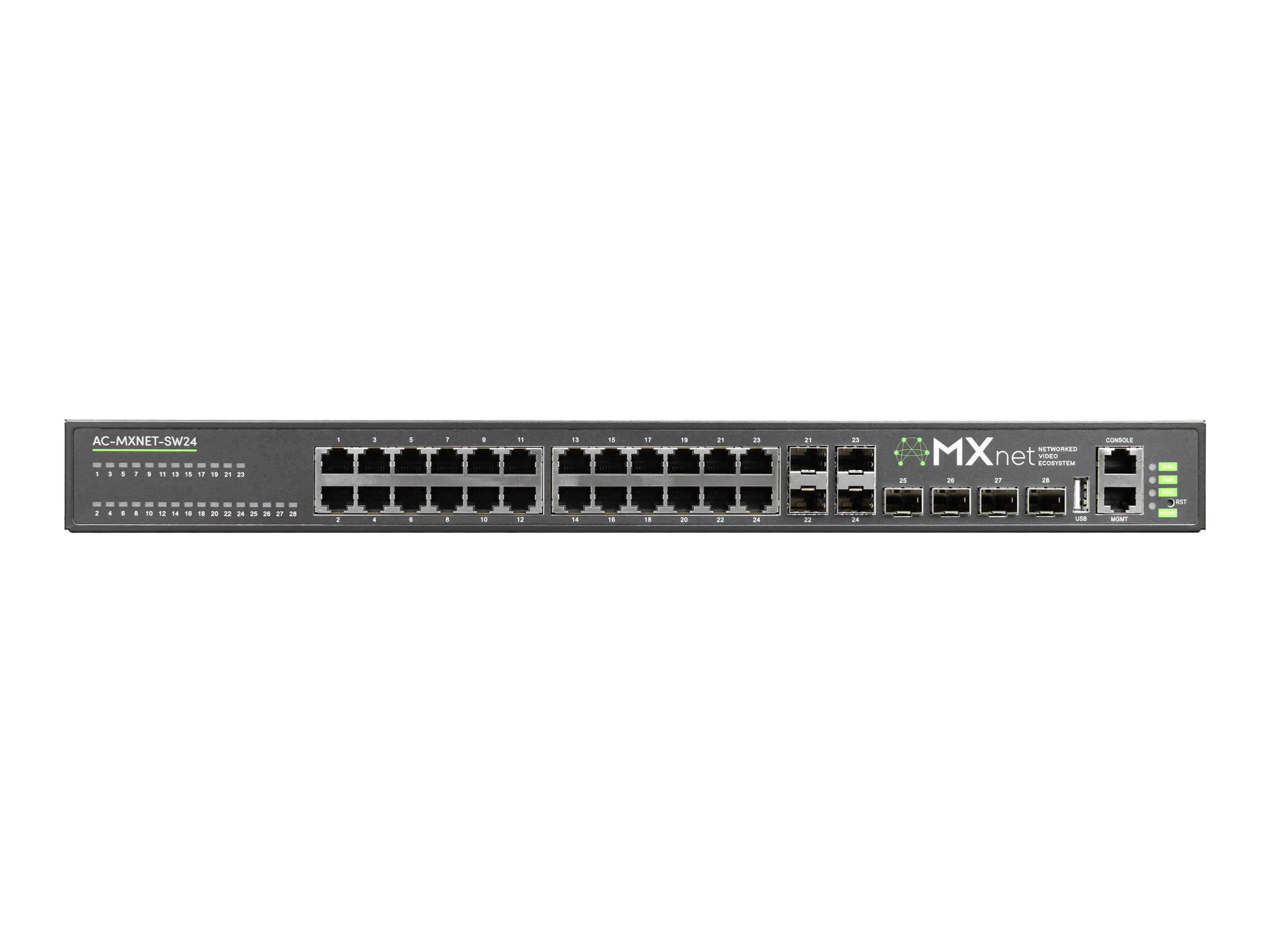 AVpro Edge AC-MXNET-SW24 – Switch – Administreret – 20 x 10/100/1000 (PoE+) + 4 x combo SFP + 4 x 10 Gigabit SFP+ – desktop, monterbar på stativ – PoE+ (370 W)
